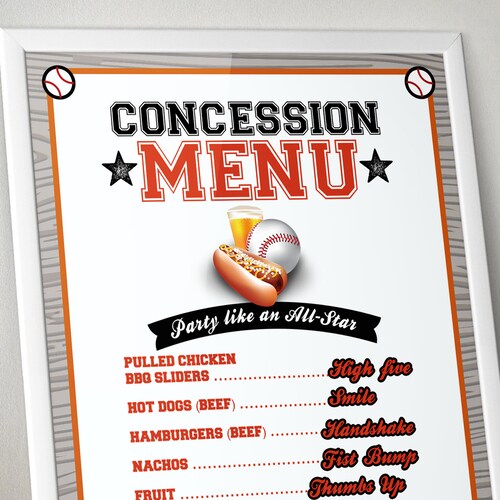 Concession Menu Sign Baseball Birthday All Star Birthday Etsy