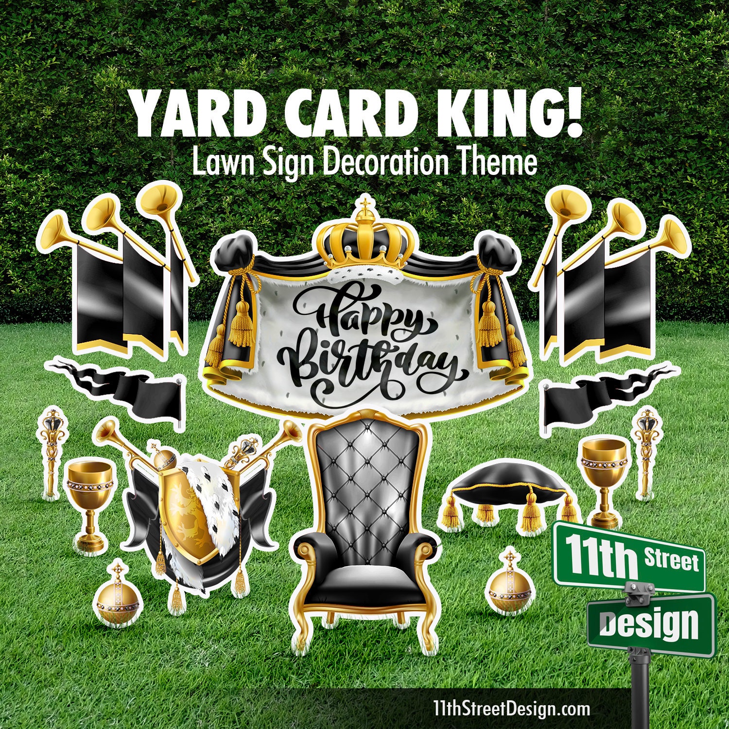 Yard Card King Birthday Party Lawn Decorations Black Gold Etsy